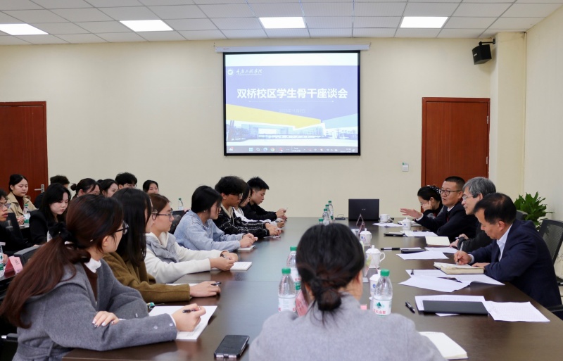 在参加学校举办的双选会后,孙芳城校长一行与学生骨干代表交流座谈。20余名学生骨干代表围绕学业发展、校园生活、班团建设等话题畅所欲言。从课程设置到生活服务,从个人成长到集体需求,同学们既坦诚分享遇到的实际问题,也提出“建立朋辈导师库”“双校区联动优化”等建设性意见。