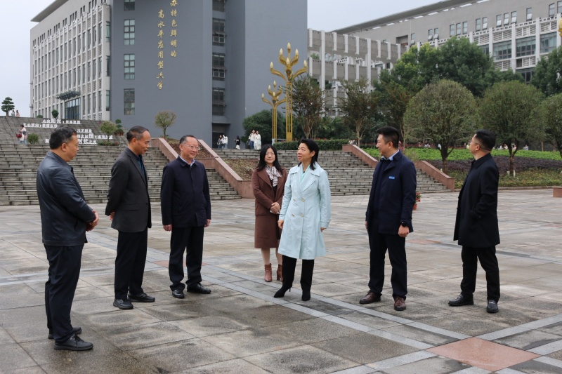 (本网讯 文/ 双桥校区管委会综合办 刘娅楠 图/ 双桥校区管委会学工办 杨世玲)11月7日,大足区政协党组书记、主席廖文丽一行莅临我校双桥校区调研。大足区政协副主席罗道书,大足区龙水湖旅游度假区主任张厚宽,通桥街道党工委书记马波,通桥街道党工委副书记、办事处主任黄现平等有关领导陪同调研。校长助理、双桥校区党工委副书记邹均,校长助理、基础学院院长蒋国华及校区相关负责人参加调研。
