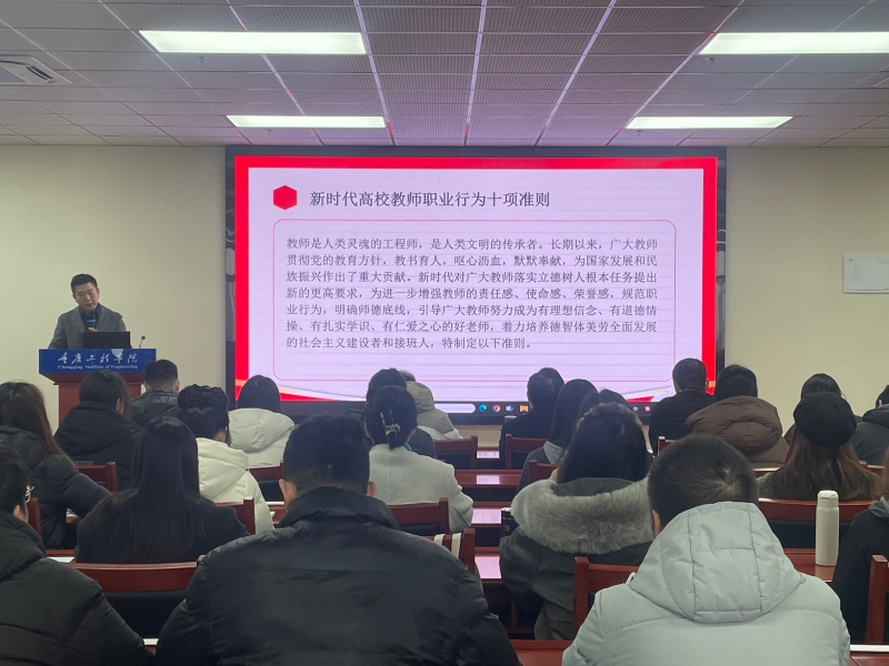 活动中,邹均带领全体教职工集中学习《新时代高校教师职业行为十项准则》《高等学校预防与处理学术不端行为办法》等文件,聚焦政治方向、廉洁自律、师生关系、学术规范等核心条款展开重点解读,强调师德师风是教育工作者的立身之本、育人之基,明确新时代教职工必须严守的职业红线与行为底线。随后,活动通过剖析师德师风负面案例,以“身边事”警示“身边人”,深刻揭示师德失守的严重危害,让全体教职工接受了一次深刻的思想洗礼。