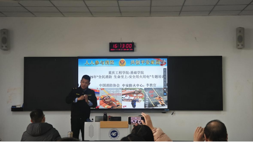 培训伊始,李教官结合近年来高校火灾典型案例,深入剖析了电气火灾、实验室违规操作、宿舍违规用电等隐患的成因及危害。图文并茂的PPT和触目惊心的视频资料,展示了火灾预防措施、初期火灾扑救方法、火场逃生技巧及消防器材使用规范,引导师生树立“人人都是安全第一责任人”的意识。