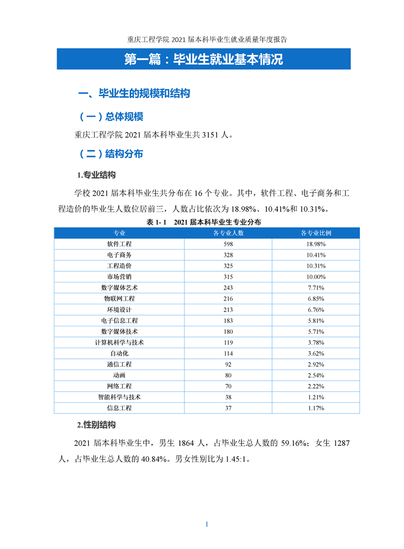 > 重庆工程学院2021届本科毕业生就业质量年度报告