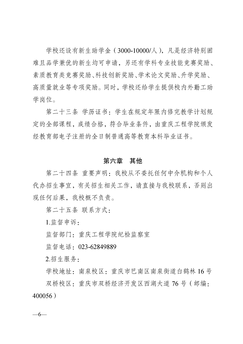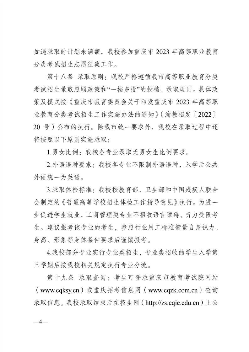 重庆工程学院2023年重庆市高等职业教育分类考试招生章程
