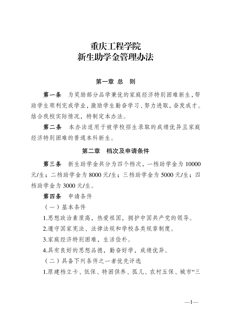 重庆工程学院国家奖助学金评定及管理实施办法(202..