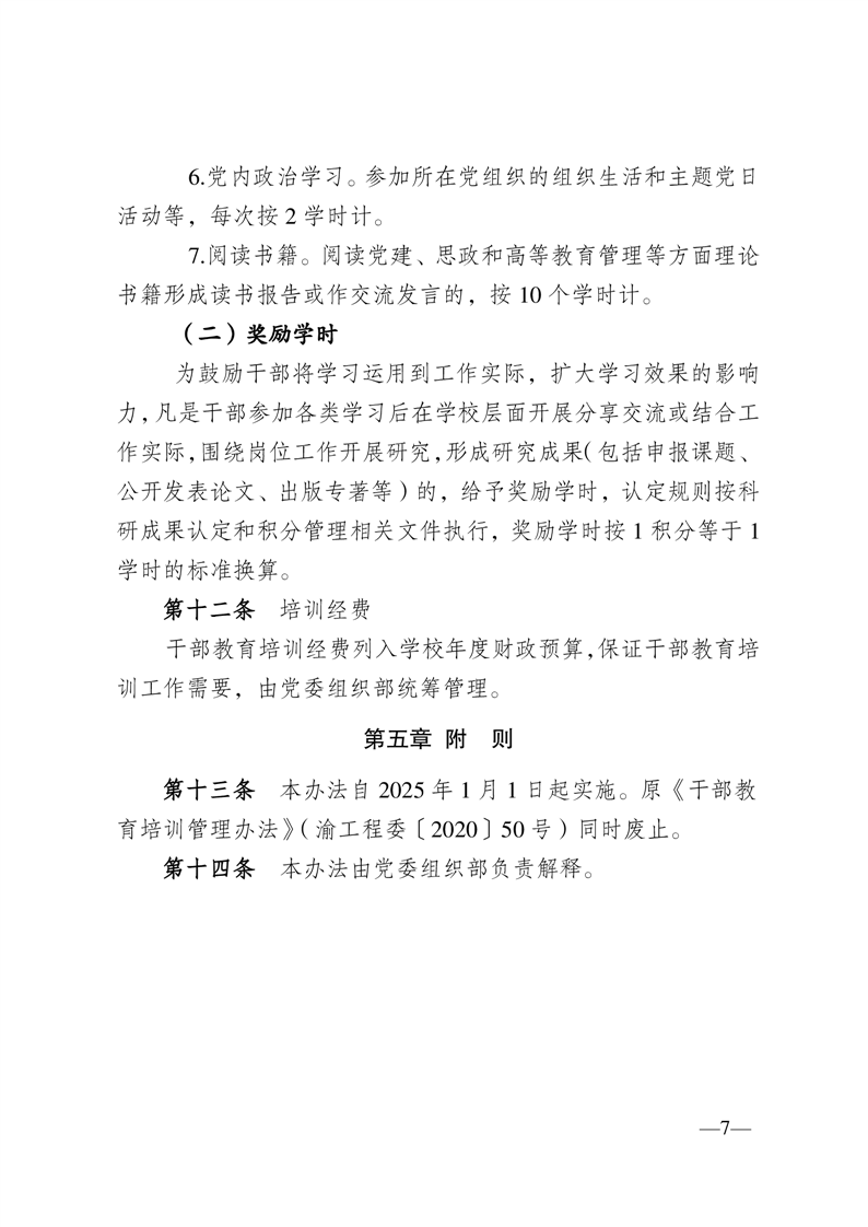 中共重庆工程学院委员会 重庆工程学院干部教育培训管理办法