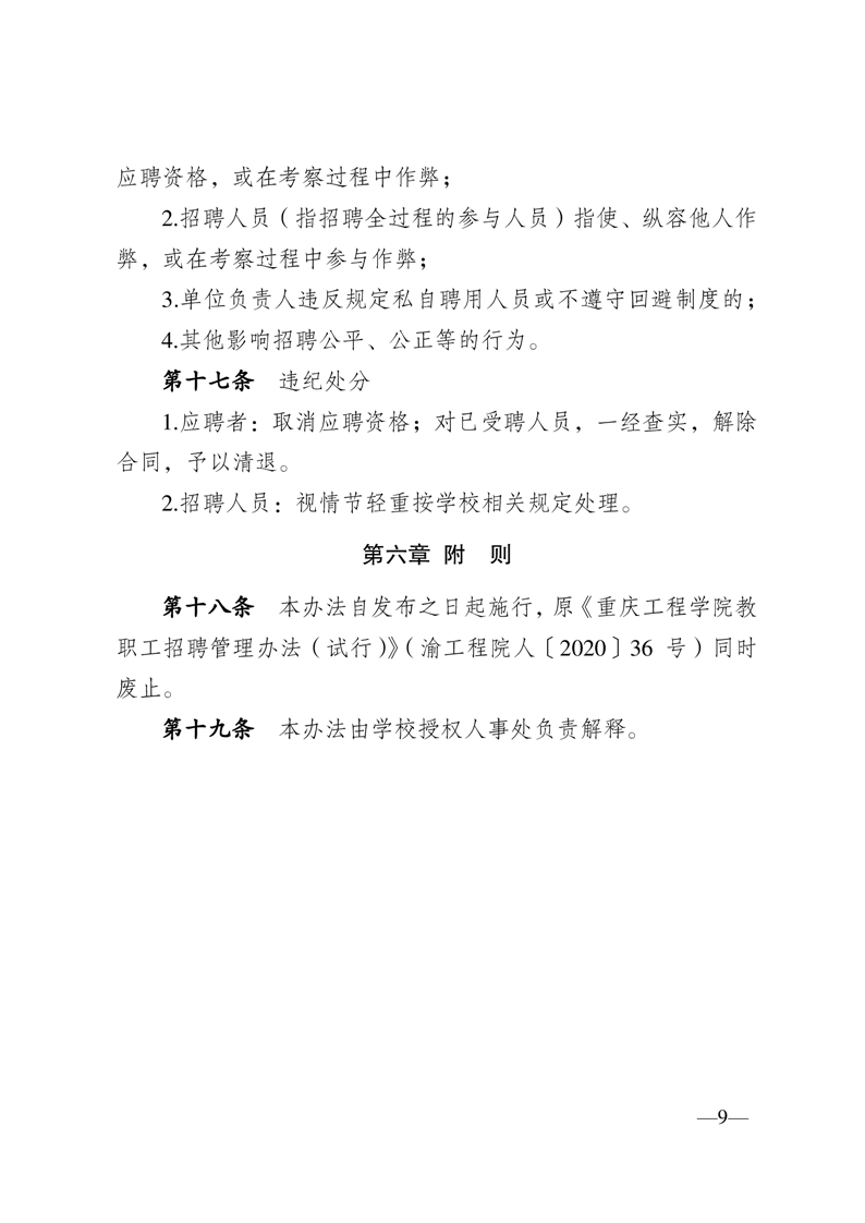 重庆工程学院教职工招聘管理办法(2024年修订)