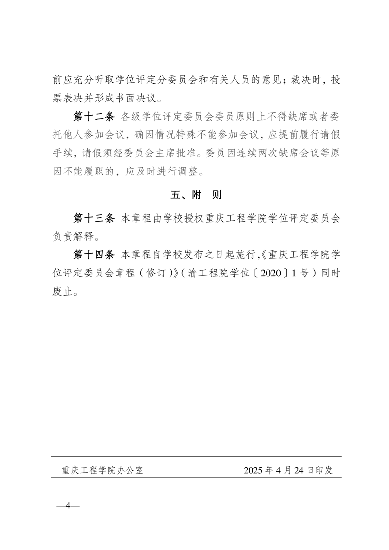 重庆工程学院学位评定委员会章程(2025年修订)