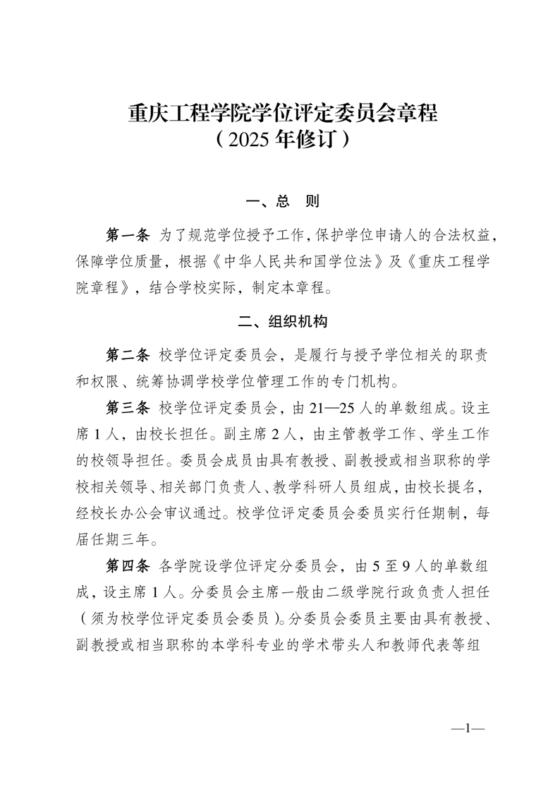 当前位置:首页 > 学位、学科 > 重庆工程学院学位评定委员会章程(2025年修订)