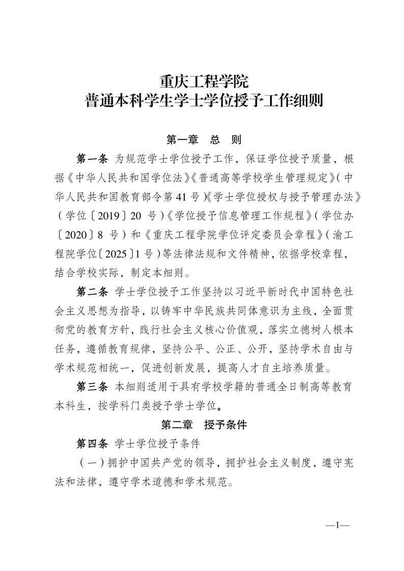 重庆工程学院普通本科学生学士学位授予工作细则