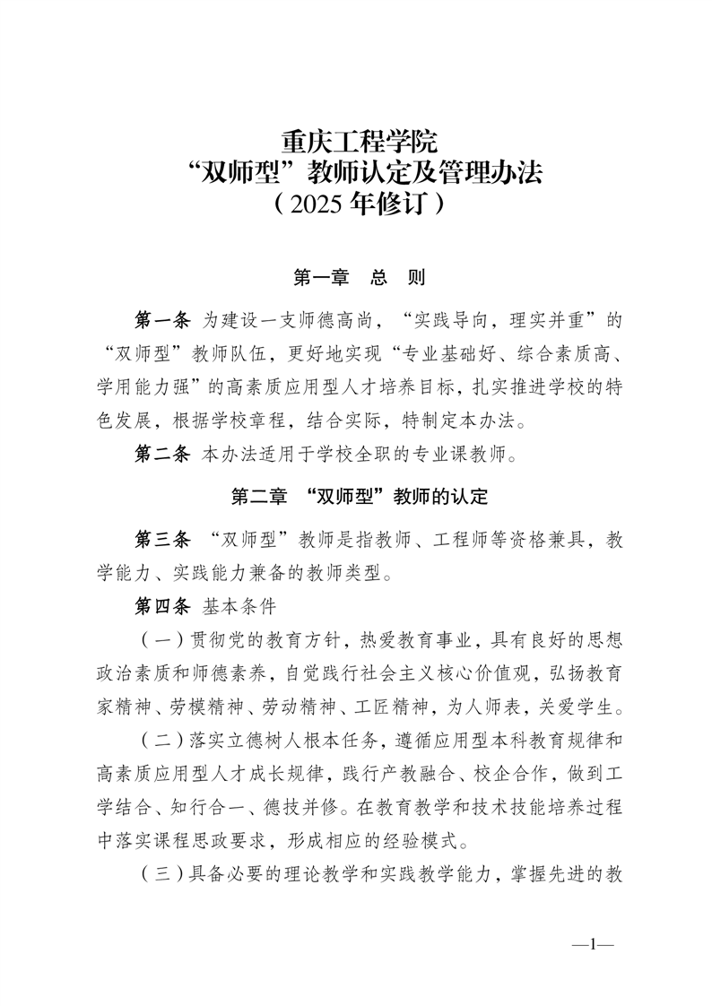重庆工程学院双师型”教师认定及管理办法(2025年修订)