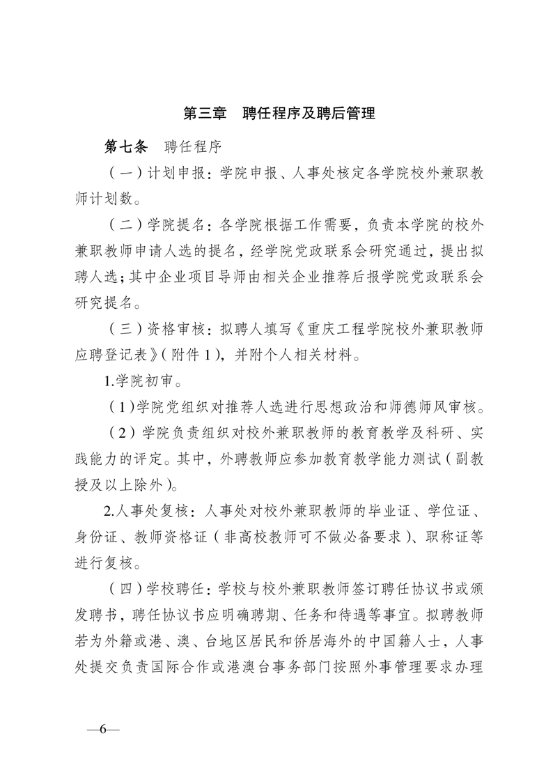 当前位置:首页 > 人事师资 > 重庆工程学院校外兼职教师遴选与管理办法(2025年修订)