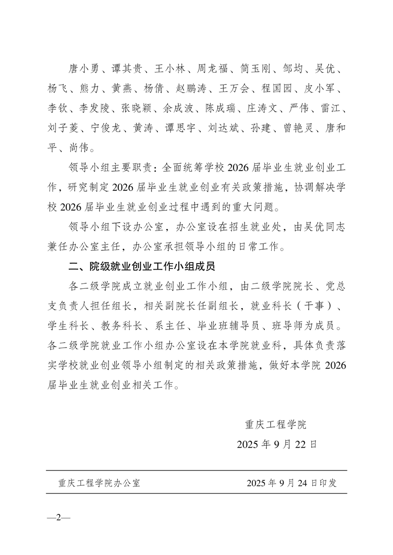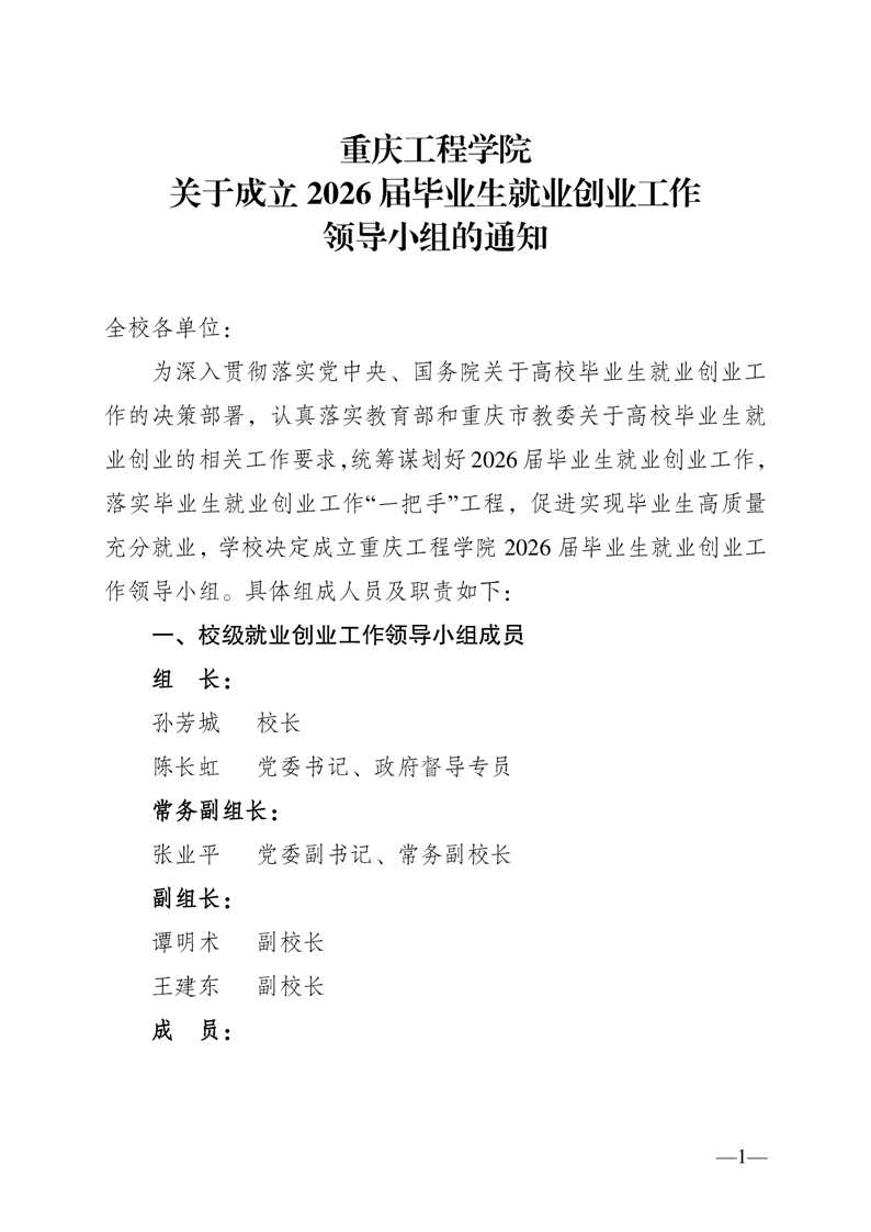 关于成立2026届毕业生就业创业工作领导小组的通知