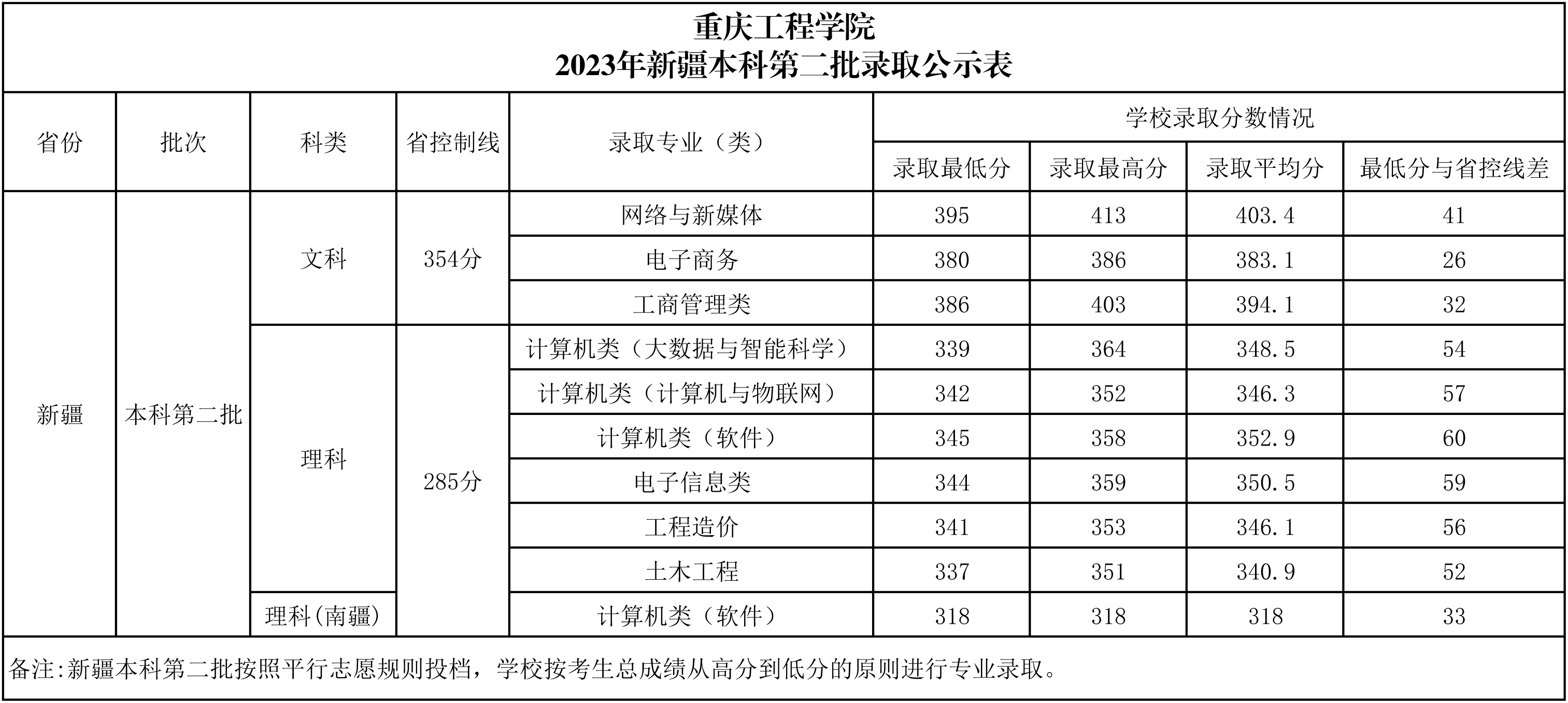 根据新疆2023年普通高校招生录取进程,我校已完成了新疆本科二批次(普通文理类)的录取工作,招生计划已录取满额,考生可以登录新疆招生网(www.xjzk.gov.cn)或学校阳光招生网录取查询系统(http://www.cqie.edu.cn:8092/query)查询录取轨迹及录取信息,新生录取通知书将于87日后采用中国邮政特快专递(EMS)的形式寄出,请录取的考生在近期保持手机的畅通并注意查收。如有疑问,请致电重庆工程学院招生办公室,联系电话:0236284662662846636