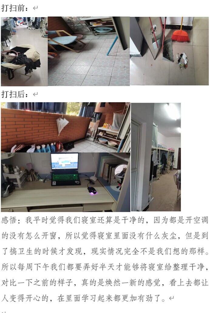 宿舍文化建设的目的,在于帮助大学生培养正确的生活态度和良好的道德品质,以实现高等教育的最终目标,培养合格的人才。通过本次活动的开展,同学们了解到保持宿舍良好环境卫生的重要意义,也锻炼了动手能力。