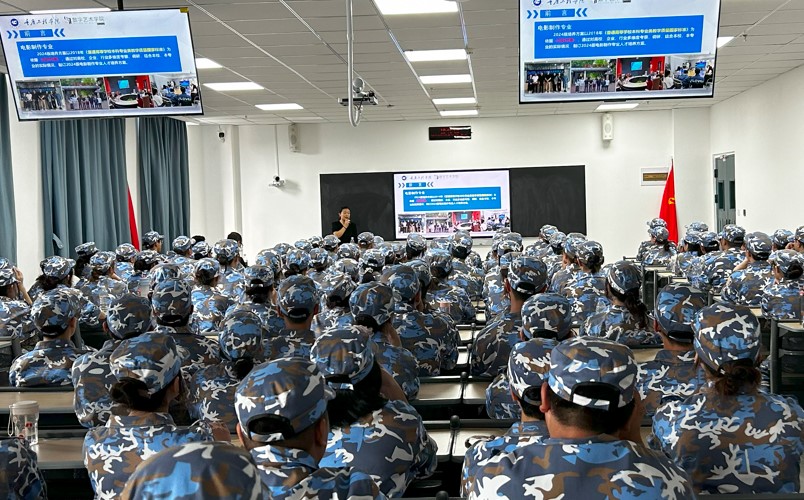 本网讯(文/图 教务科赵正伟)9月20日上午,数字艺术学院“初识专业,筑梦未来”新生专业宣讲与师生见面会在办公楼报告厅及双桥三教同步开展。学院院长庄涛文、党总支书记孙建,多位副院长、各专业负责人、教务科及辅导员代表出席活动,与全体大一新生共同参与这场助力新生融入学院的“启蒙课”,活动由孙建书记主持。